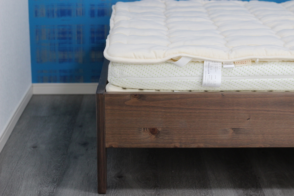ベッドパッドはKaiminyaオリジナルのジグソーウールベッドパッド(1.5kg入り)です。