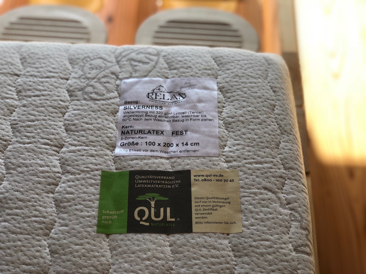 そしてこの上に乗せるマットレスはシルバーネスH140ハード。ベルギー製のラテックスフォームを、ダニはカビに強い銀糸とリヨセルを使った側生地で包んだマットレスです。ここが所謂コンフォートゾーンですね。