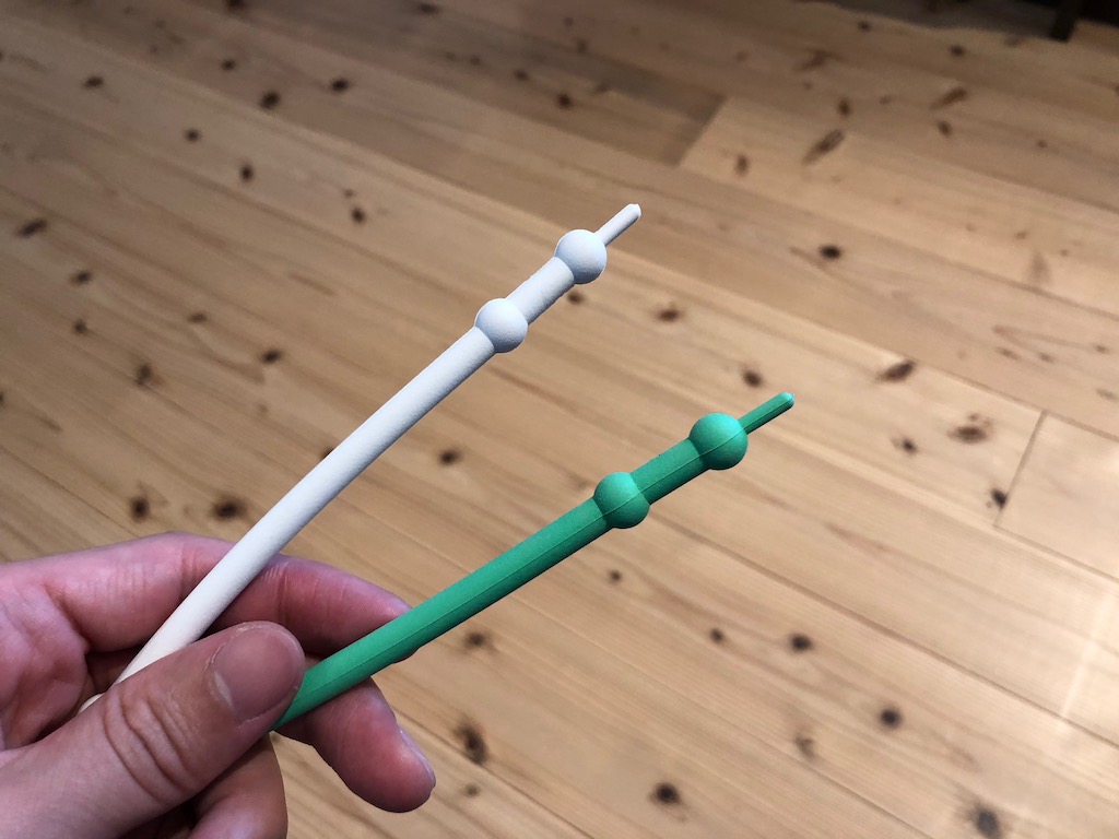 このラバーピンは基本的には白色のレギュラーの硬さのものを使用しますが、快眠屋ではより幅広い体型の方に対応できるように、緑色のハードタイプのラバーピンもご用意させて頂いております。