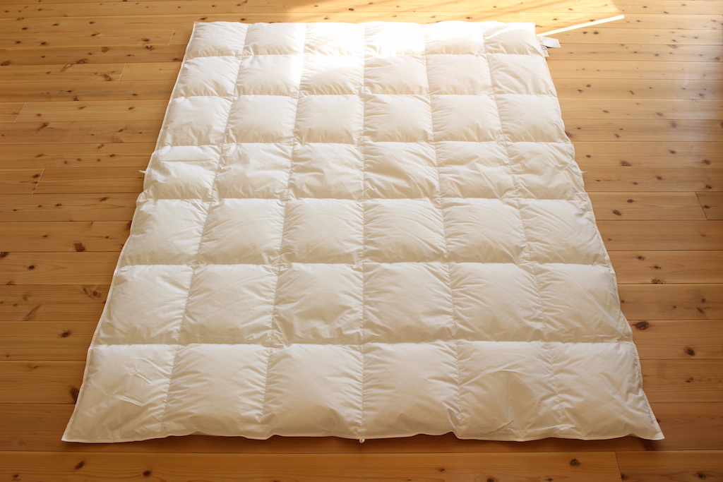 羽毛は日本羽毛製品協同組合が定めるところのエクセルゴールドラベルクラスに相当するとのこと。つまりダウンパワー350以上の羽毛だということです。