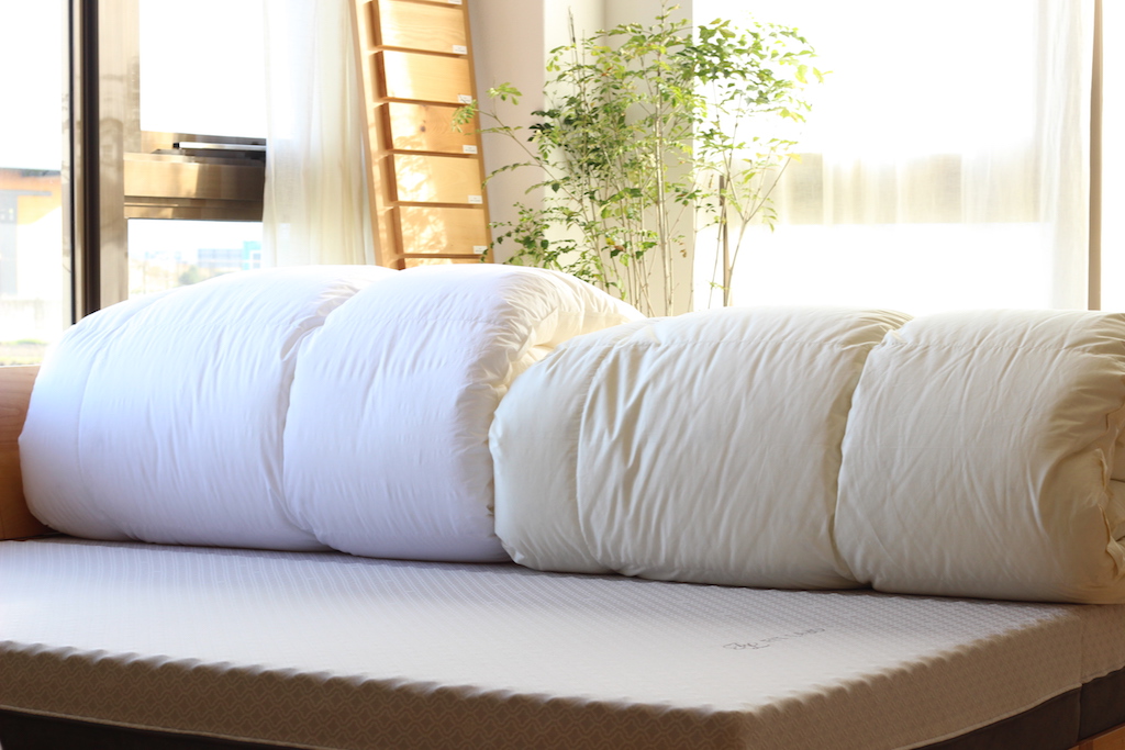 何百グラムだから大丈夫!というように紋切り型に考えるのではなく、それぞれの条件に応じて最適なグラム数を充填することが羽毛布団の本質ではないでしょうか?快眠屋はそのように考えます。