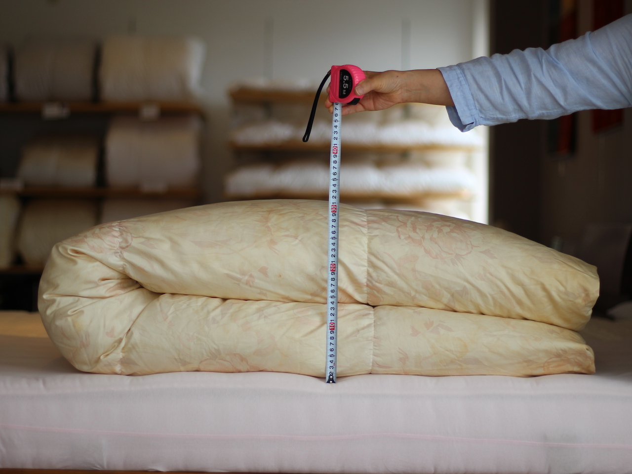 Y様は肌にぴったりと吸い付くようなこの布団の掛け心地を大変気に入っておられ、再びこの気持ち良さを取り戻したいということでした。