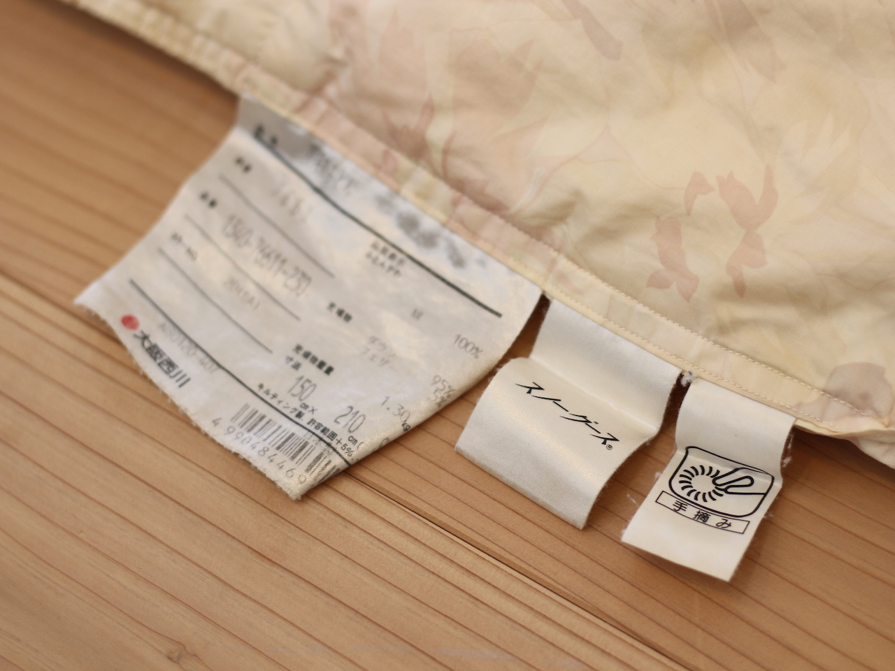 羽毛は手摘みのホワイトグースダウン95%。それも大阪西川が最高級品として位置付けていたスノーグース®︎を使用したものでした。