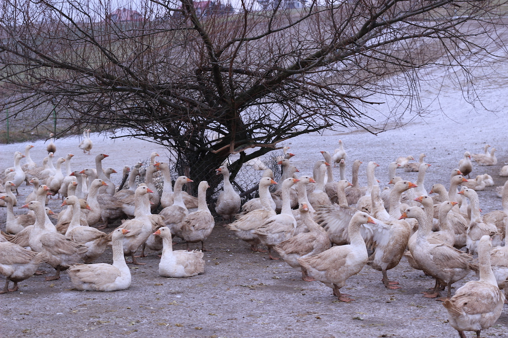 農場に向かう道中、周囲を見回しても見えるのは地平線のみ。山がない。グースは足腰がそれほど強くないので、起伏の差が激しい地域は飼育に向かないのだ。今年は例年に比べ暖かいようで、例年に比べると雪も少ないそうだ。と言っても外に出ると凍てつくような寒さが身体を襲う。ドイツとここまで気候が違うのか。