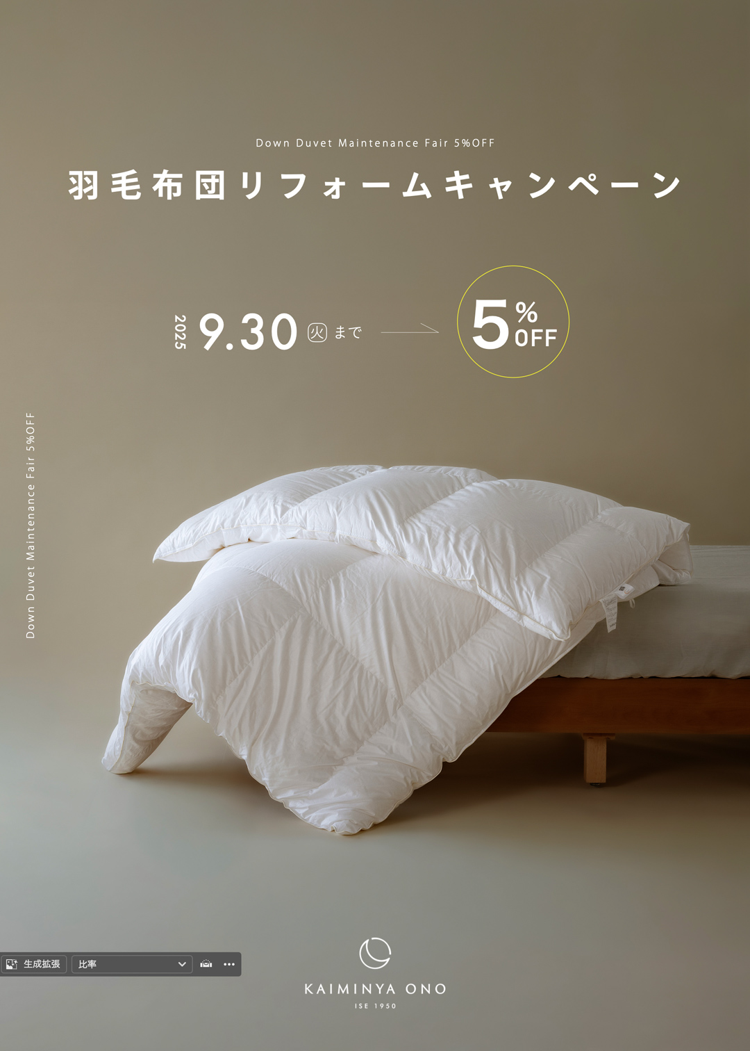 生活スタイルの変化とともにちょうど良い布団のサイズが変わることはよくあることです。快眠屋ではサイズの変更、厚みの変更も全て自由に対応ができますのでご安心ください。クイーンやダブルからシングルへのサイズダウンの場合、補充羽毛なしで対応できるケースもあり、よりリーズナブルです。