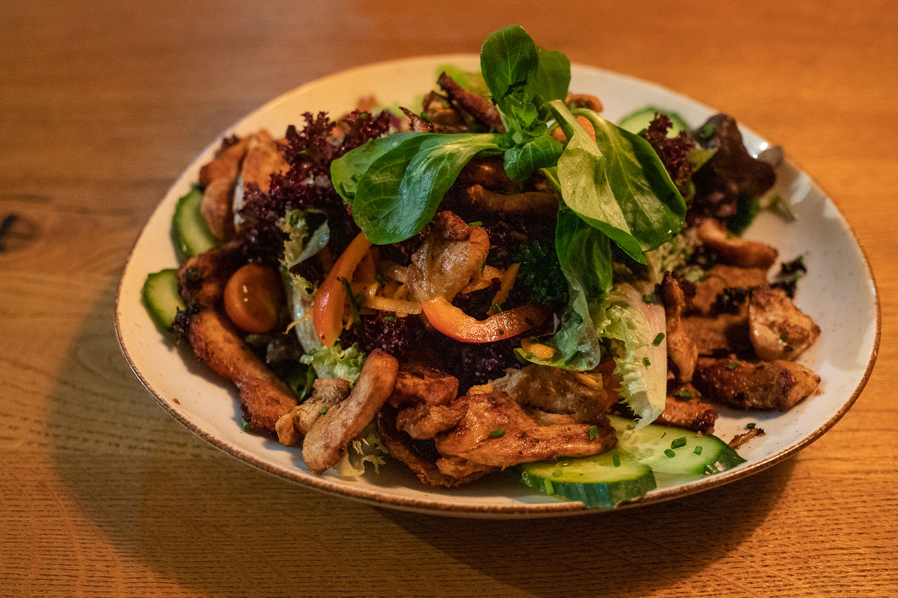 この日は早々にホテルにチェックインし、ホテルの一階がカフェレストランになっていたのでそこで夕食を食べて就寝。夕食は鶏胸肉がたっぷり入ったサラダ(かなりビッグサイズ)を頂きました。このサラダすごく美味しい。