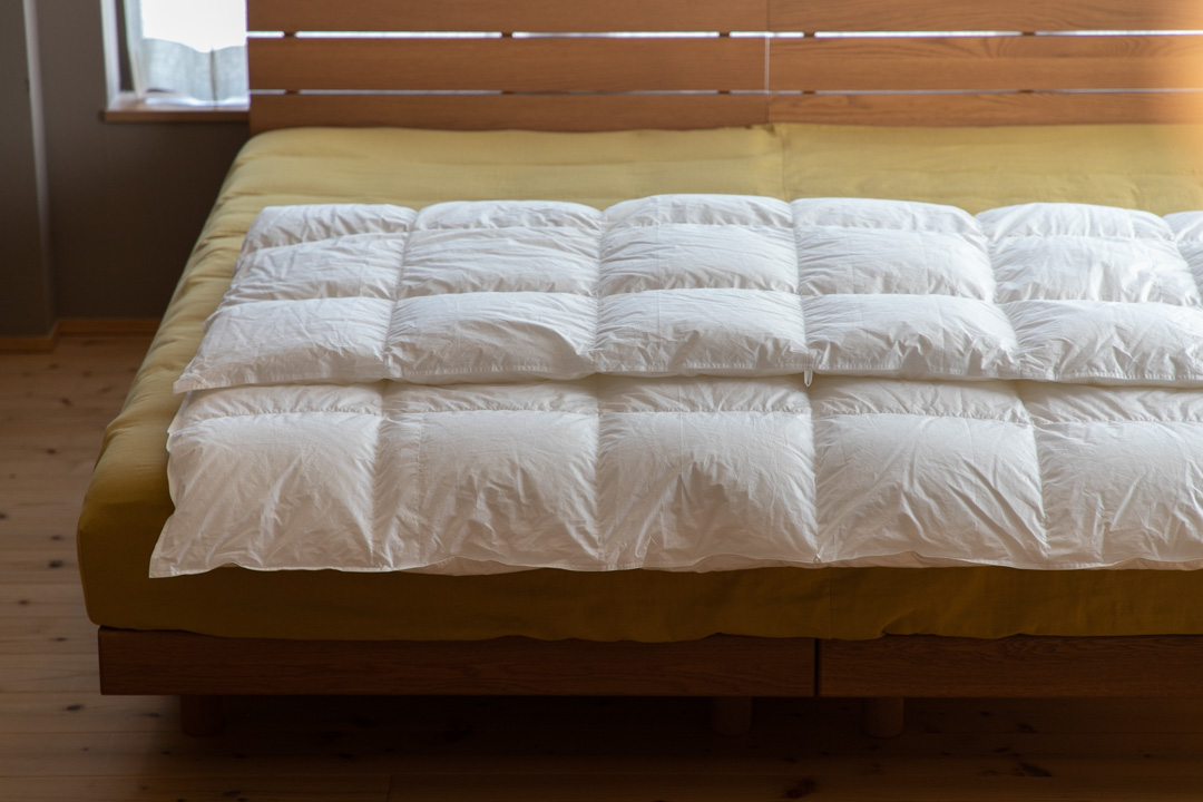 S様は100番手双糸の超軽量ダブルガーゼ掛布団カバーも合わせてお使いになっているのですが、「使い始めてから三ヶ月以上経っているのに、未だにこの布団で寝るのが毎晩楽しみなんです。」とニッコリ。