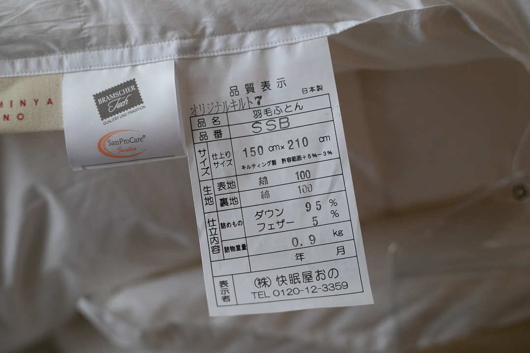 先日千葉県佐倉市のお客様からご注文を頂いた羽毛布団です。(厚みは保温力●●●●●○)