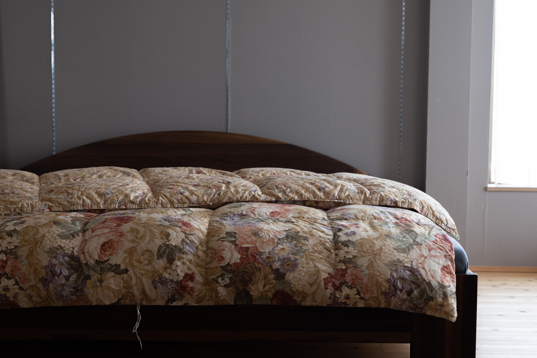 こういった趣旨の話をK様にお伝えし、お見積りも複数パターンご提示させて頂いた結果、K様も色々と悩まれたのですが、最終的には「ツインダウンはとりやめ。ダブルの合掛け1枚からシングルの合掛け(やや冬寄り)1枚にリフォーム」という結論になりました。