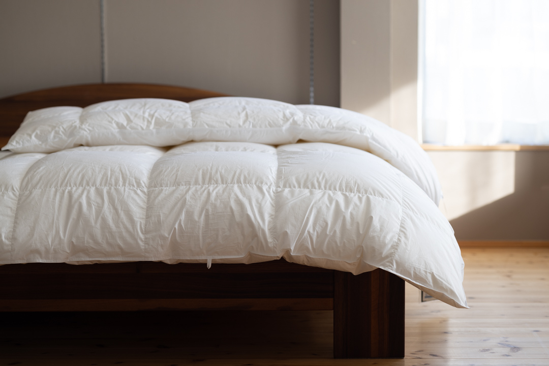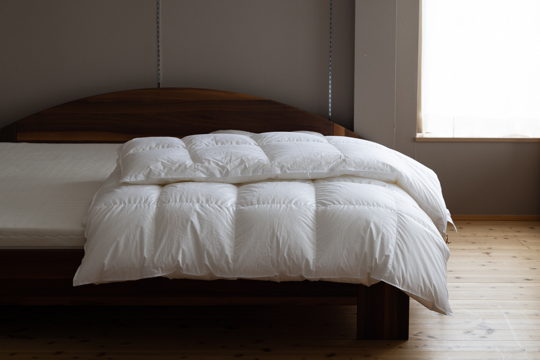 今夏にベッドとオーダーメイド枕をご購入下さったH様。これまでは息子さんからのお下がりの羽毛布団をお使いだったそうですが、ベッドだけでなく掛布団も新調したくなってきたということでご来店いただきました。ありがとうございます。